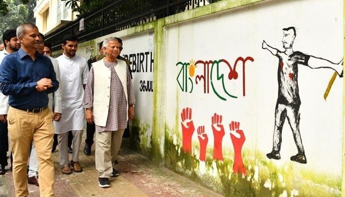 বাংলাগেজেট রিপোর্ট : জুলাই ও আগস্টে ছাত্র নেতৃত্বাধীন গণ-অভ্যুত্থানের সময় তরুণ বিপ্লবীদের আঁকা গ্রাফিতি দেখতে ঢাকা বিশ্ববিদ্যালয় এলাকা পরিদর্শন করেছেন প্রধান উপদেষ্টা অধ্যাপক ড. মুহাম্মদ ইউনূস।