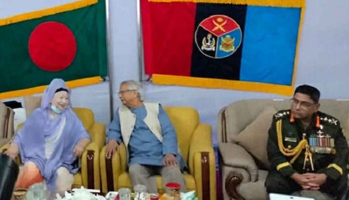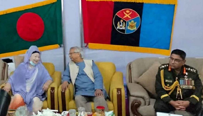 ডেস্ক রিপোর্ট: রাজধানীর সেনানিবাসে সশস্ত্র বাহিনী দিবস উপলক্ষে আয়োজিত অনুষ্ঠানের সাইডলাইনে প্রধান উপদেষ্টা প্রফেসর মুহাম্মদ ইউনূস ও বিএনপি চেয়ারপার্সন বেগম খালেদা জিয়া পারষ্পরিক সৌজন্য বিনিময় করেন।