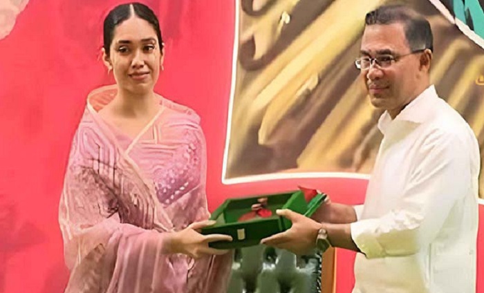 বাংলাগেজেট রিপোর্ট : প্রয়াত বিএনপি চেয়ারপারসন ও তিনবারের প্রধানমন্ত্রী বেগম খালেদা জিয়ার পক্ষে মরণোত্তর স্বাধীনতা পুরস্কার গ্রহণ করেছেন তার নাতনি ও বর্তমান প্রধানমন্ত্রী তারেক রহমানের কন্যা জাইমা রহমান।